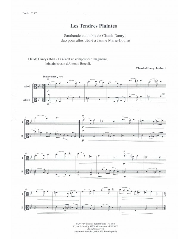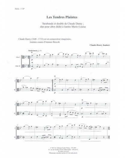 Les Tendres Plaintes Claude-Henry Joubert Viola Ensemble Recueil