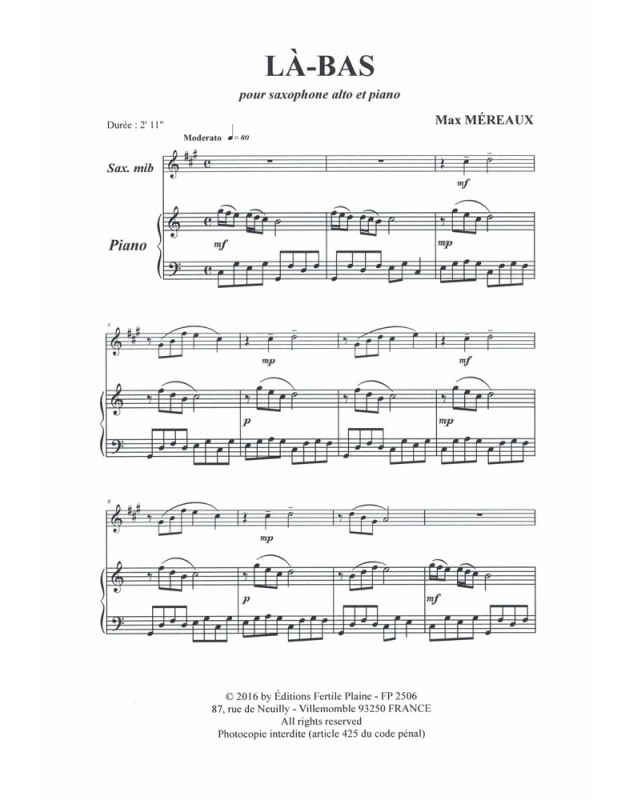 Là-Bas Alto Max Mereaux Saxophone et Piano Recueil + Partition