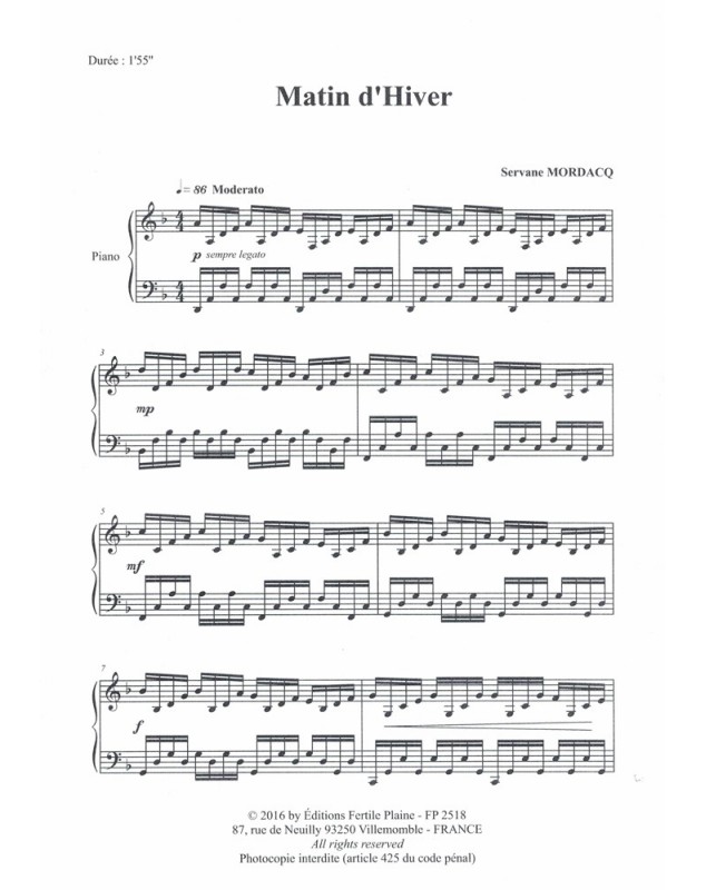 Matin D'hiver Servane Mordacq Piano Recueil