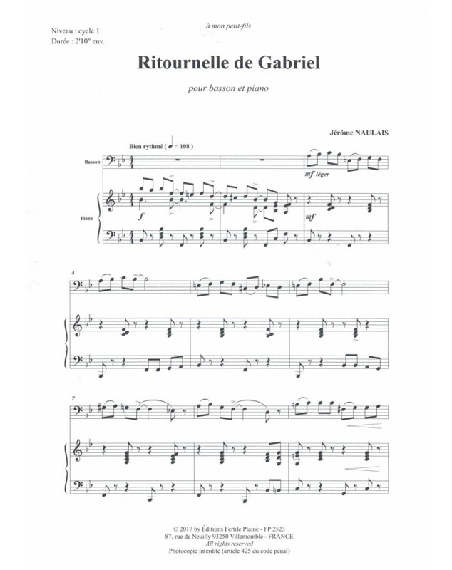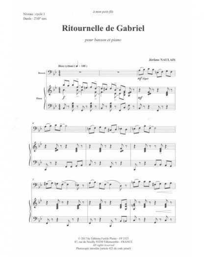 Ritournelle De Gabriel Jérôme Naulais Basson et Piano Recueil