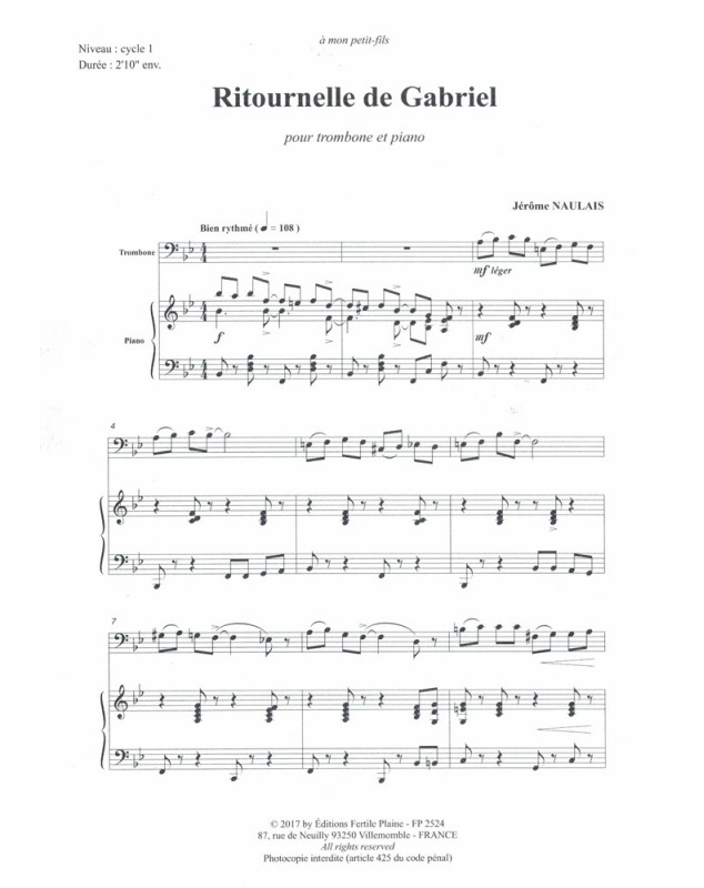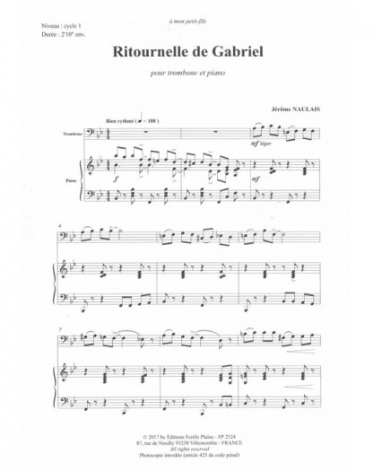 Ritournelle De Gabriel Jérôme Naulais Trombone et Piano Recueil