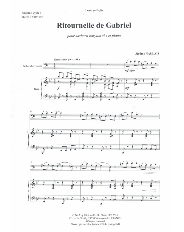 Ritournelle De Gabriel Jérôme Naulais Euphonium Recueil
