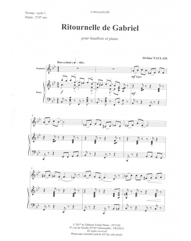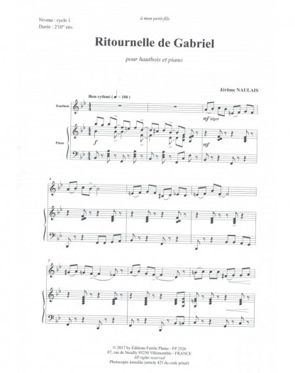 Ritournelle De Gabriel Jérôme Naulais Hautbois et Piano Recueil + Partition