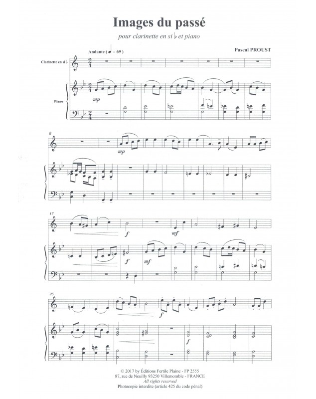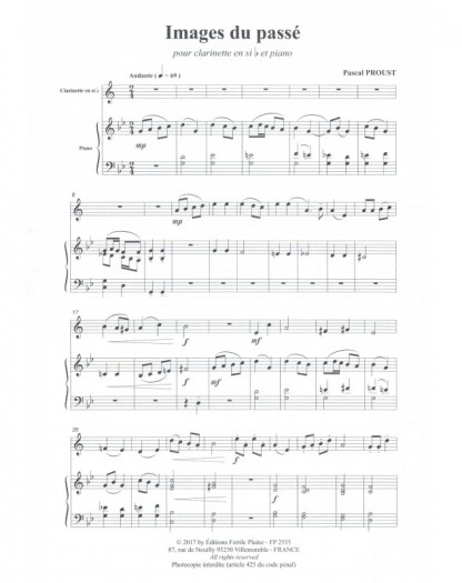 Images Du Passé Pascal Proust Clarinette et Piano Recueil
