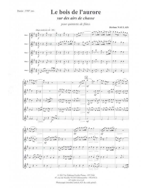Le Bois De L'Aurore Jérôme Naulais 5 Flutes Recueil
