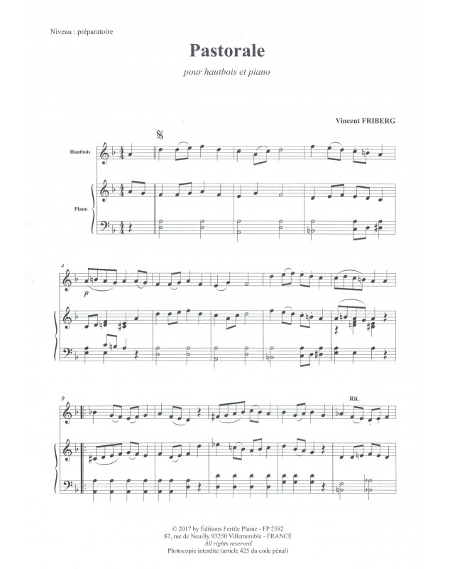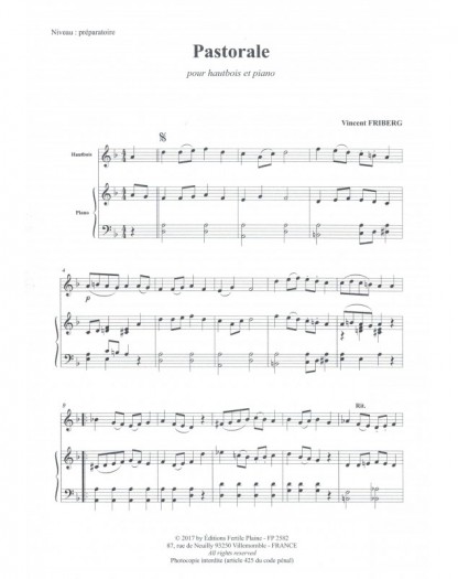 Pastorale Vincent Friberg Hautbois et Piano Recueil