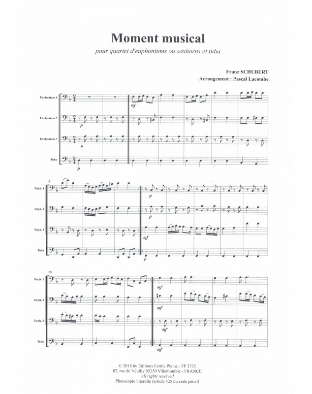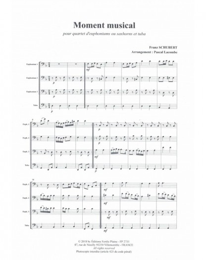 Moment Musical Franz Schubert Pascal Lacombe Ensemble de Cuivres Score + Parties