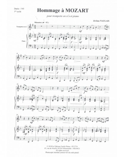 Hommage À Mozart Jérôme Naulais Trompette et Piano Recueil