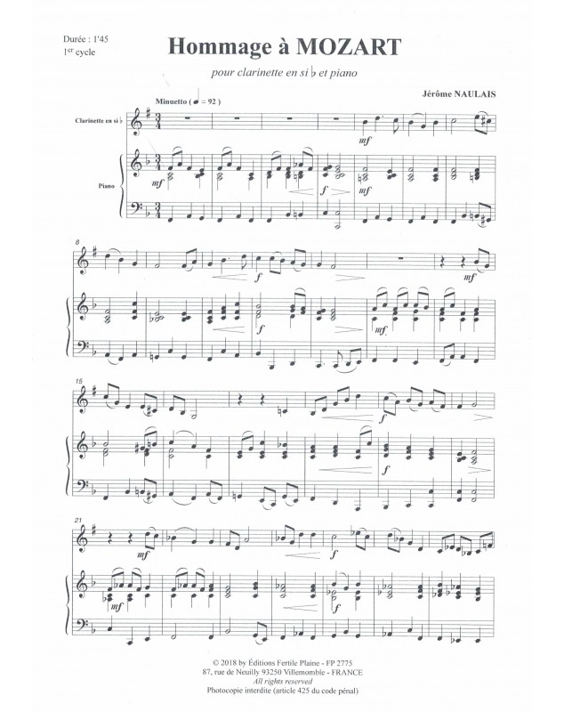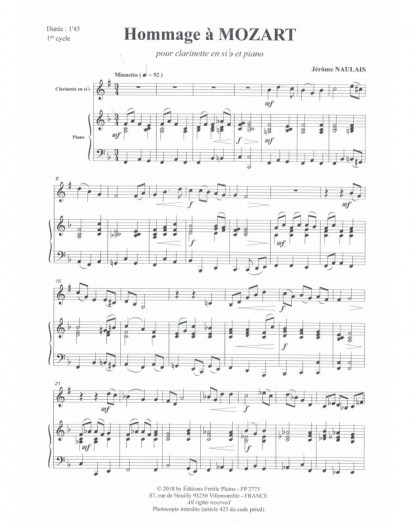 Hommage À Mozart Jérôme Naulais Clarinette et Piano Recueil