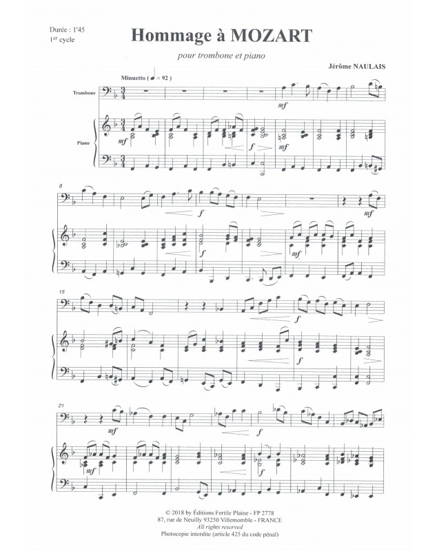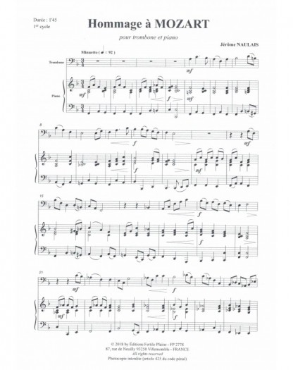 Hommage À Mozart Jérôme Naulais Trombone et Piano Recueil
