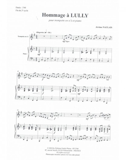 Hommage À Lully Jérôme Naulais Trompette et Piano Recueil