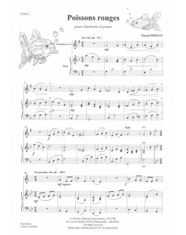 Poissons Rouges Pascal Proust Clarinette et Piano Recueil + Partition