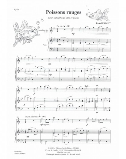 Poissons Rouges Pascal Proust Saxophone et Piano Recueil