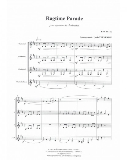 Ragtime Parade Thevenau 4 Clarinettes Score + Parties