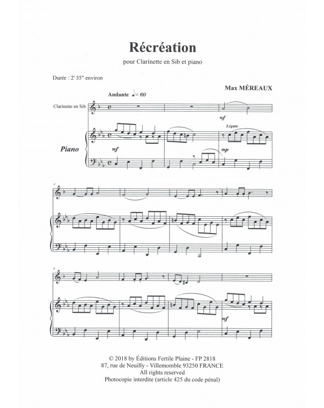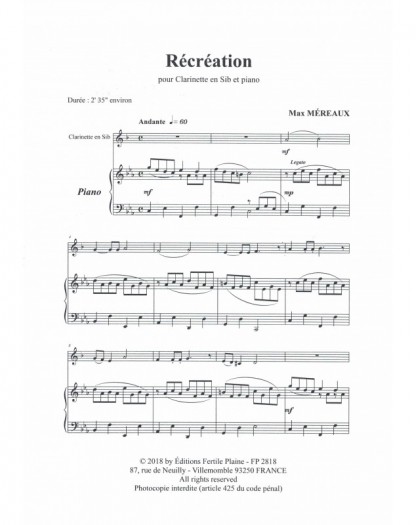 Récréation Max Méreaux Clarinette et Piano Recueil