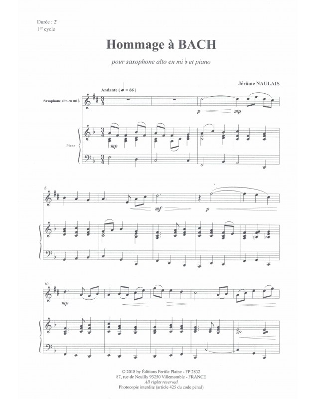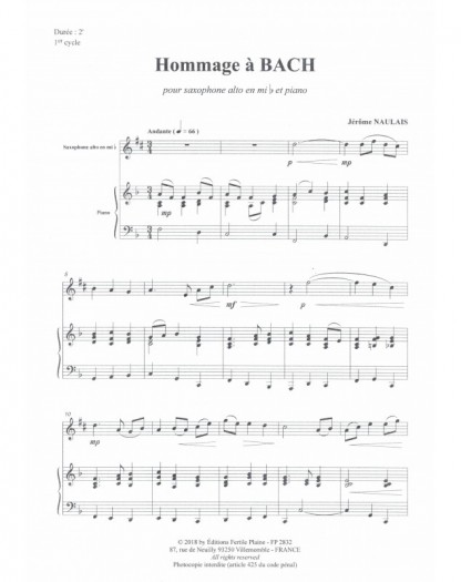 Hommage À J.S. Bach Jérôme Naulais Saxophone et Piano Recueil