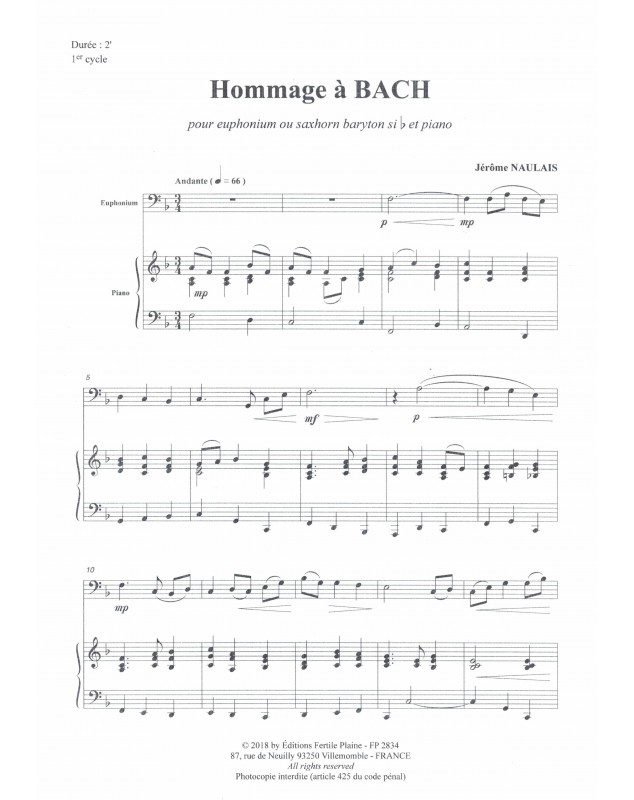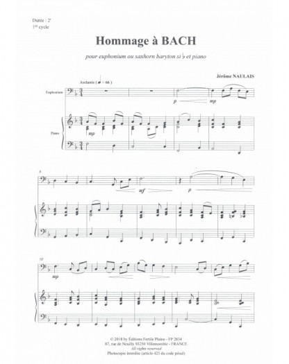 Hommage À J.S. Bach Jérôme Naulais Euphonium Recueil