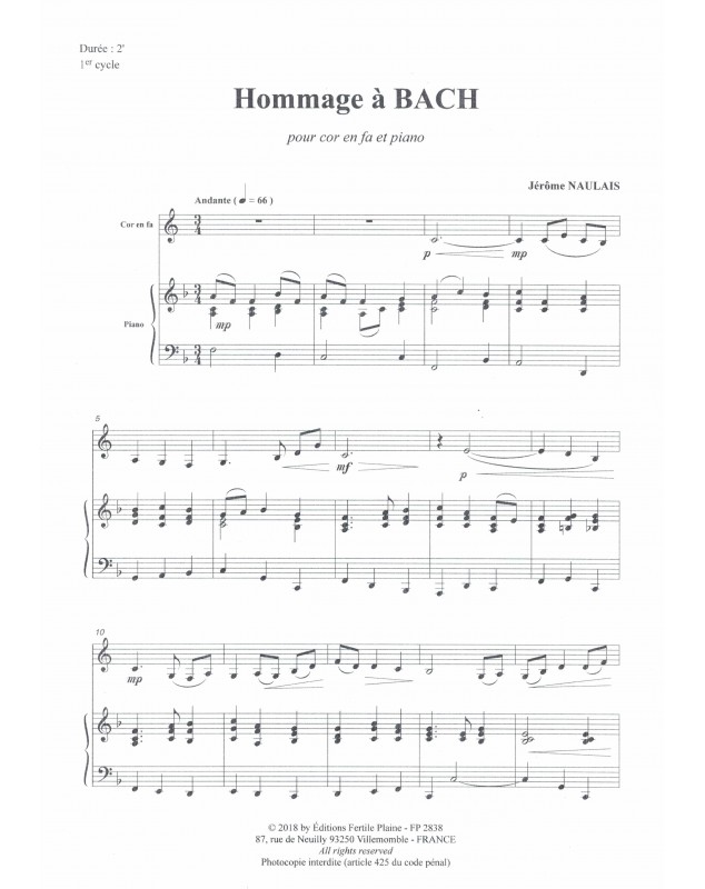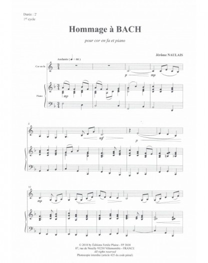 Hommage À J.S. Bach Jérôme Naulais Cor et Piano Recueil