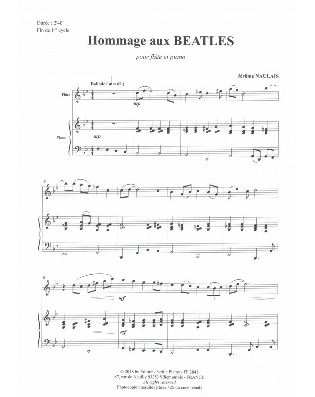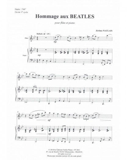 Hommage Aux Beatles Jérôme Naulais Flûte Traversière et Piano Recueil