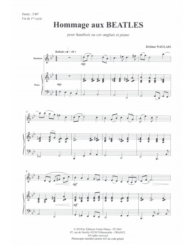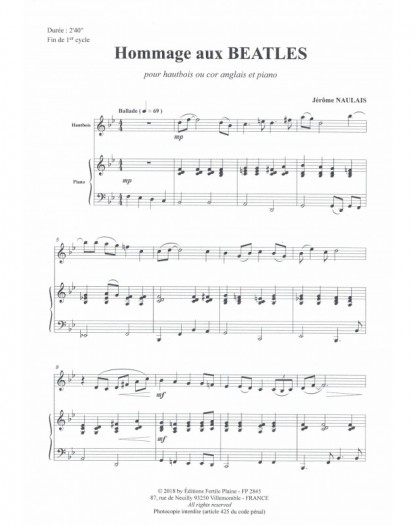 Hommage Aux Beatles Jérôme Naulais Hautbois et Piano Recueil