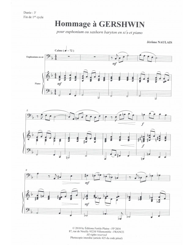 Hommage À Gershwin Jérôme Naulais Euphonium Recueil
