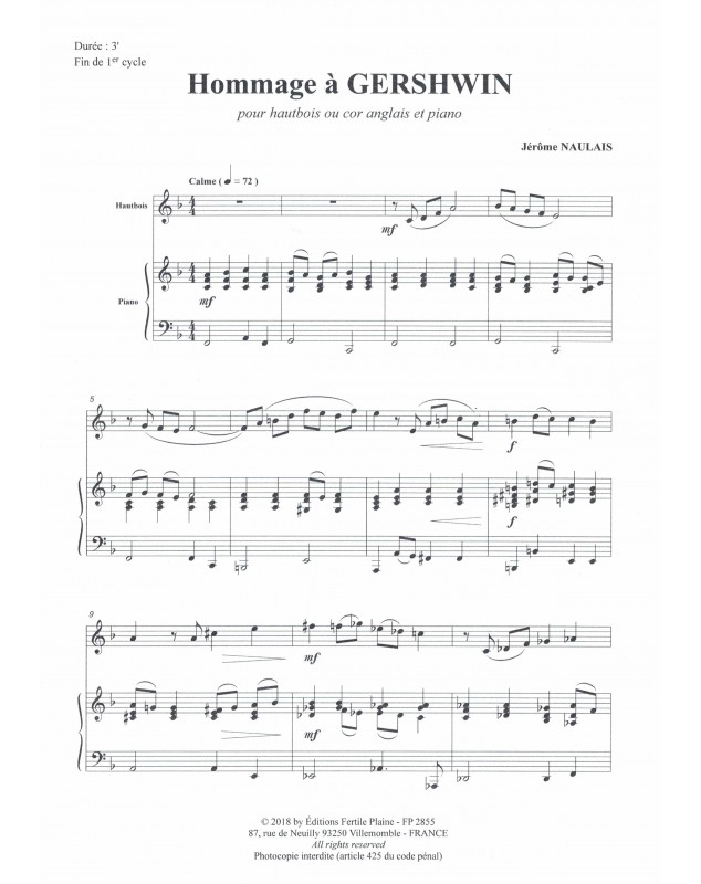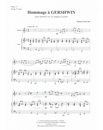 Hommage À Gershwin Jérôme Naulais Hautbois et Piano Recueil
