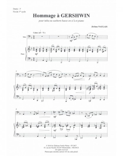 Hommage À Gershwin Jérôme Naulais Tuba et Piano Recueil