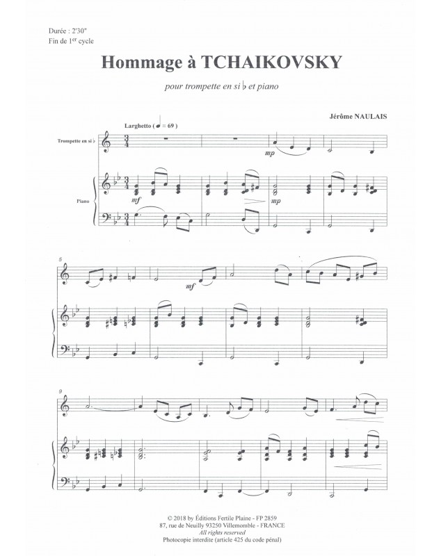 Hommage À Tchaïkowski Jérôme Naulais Trompette et Piano Recueil