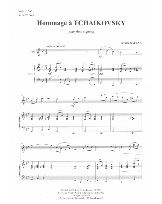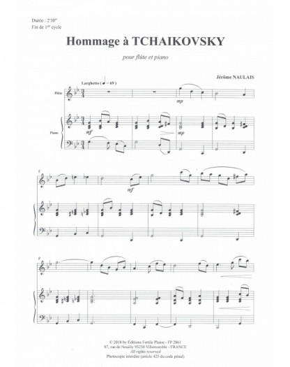 Hommage À Tchaïkowski Jérôme Naulais Flûte Traversière et Piano Recueil