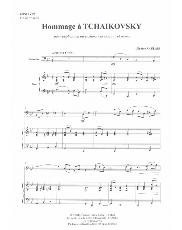 Hommage À Tchaïkowski Jérôme Naulais Euphonium Recueil