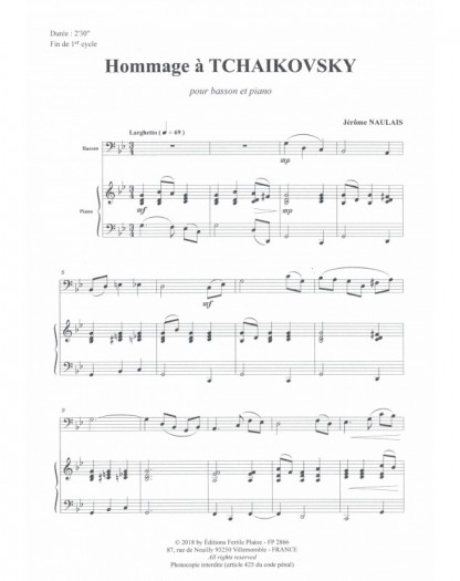 Hommage À Tchaïkowski Jérôme Naulais Basson et Piano Recueil