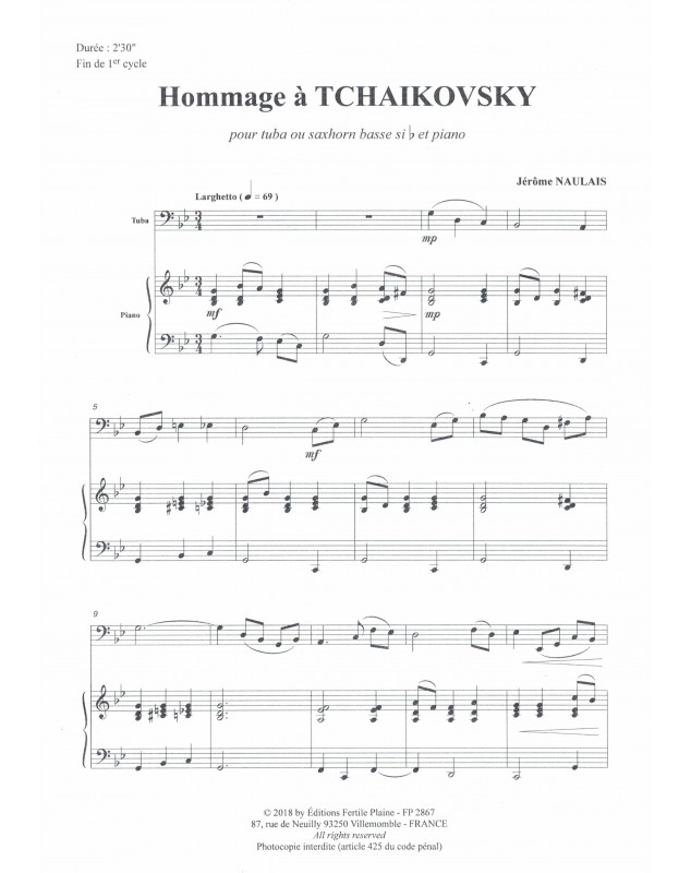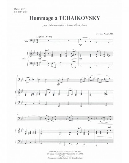 Ghommage À Tchaïkowski Jérôme Naulais Tuba et Piano Recueil