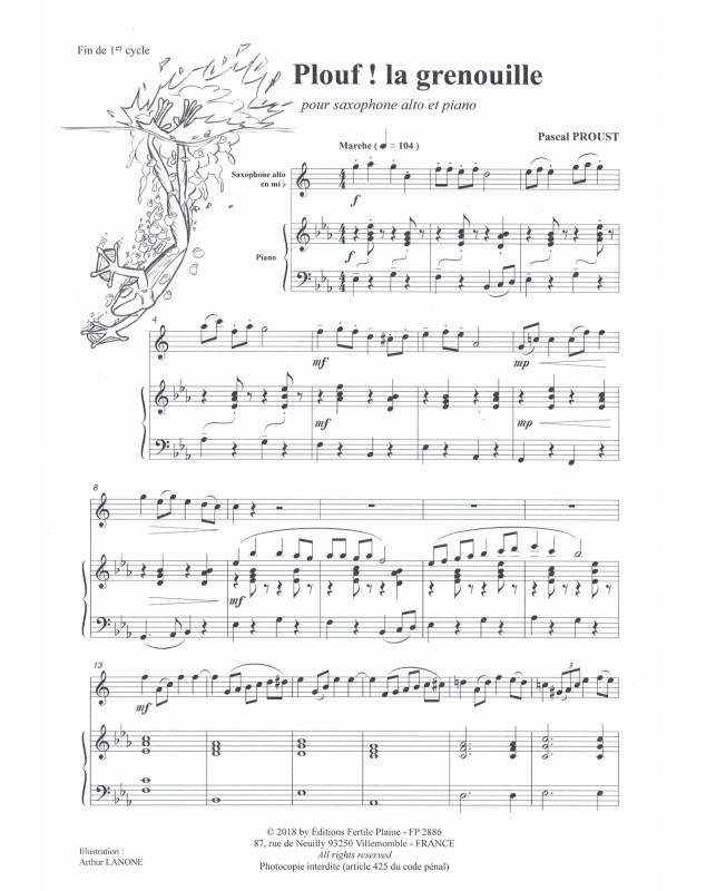 Plouf, La Grenouille Pascal Proust Saxophone et Piano Recueil