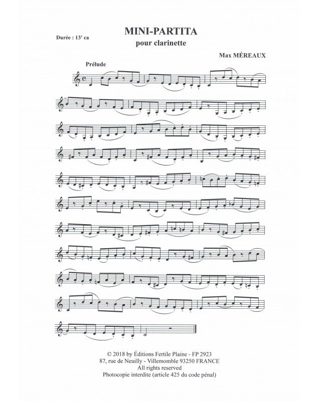 Mini-Partita Max Mereaux Clarinette et Piano Recueil