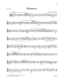 Si Scriabine est aujourd’hui avant tout connu pour sa musique de piano mystico-visionnaire, il composa dans ses jeunes années aussi une ravissante pièce de musique de chambre, la Romance pour cor et piano. Gr ce sa partie de cor pas difficile d’un point de vue technique et son accompagnement de piano tout fait charmant la Romance est un morceau de concert plein d’effet déj pour des élèves. Etant donné que l’oeuvre ne fut pas imprimée du vivant du compositeur, l’autographe représente la seule source pour notre édition, laquelle est parue en collaboration avec la moscovite Valentina Rubcova, spécialiste de Scriabine.