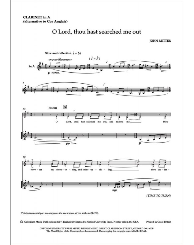 John Rutter O Lord Thou Hast Searched Me Out Choeur mixte Partition