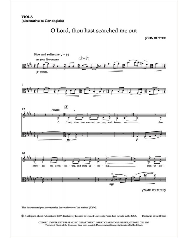 John Rutter O Lord Thou Hast Searched Me Out Choeur mixte Partition