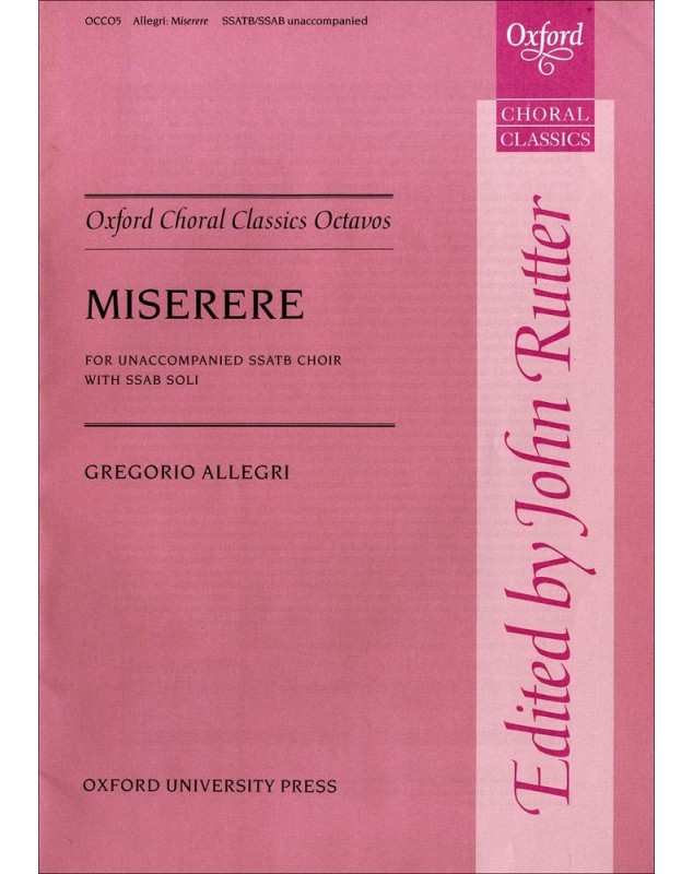 Gregorio Allegri Miserere SSATB Conducteur chorale For unaccompanied SSATB choir with SSAB soli Oxford Choral Classics Musique religieuse