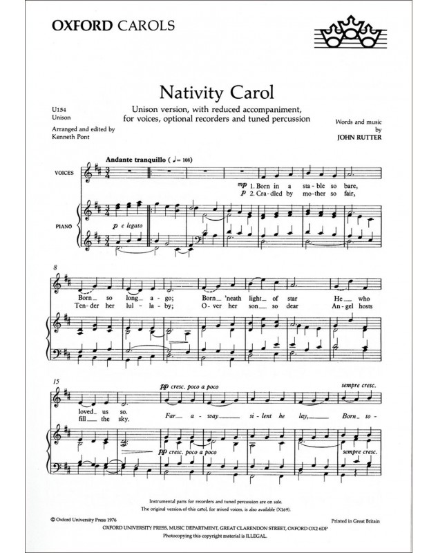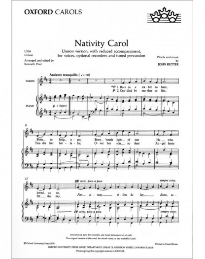 John Rutter Nativity Carol Unison Voices Conducteur chorale Oxford Christmas Carols Répertoire d'Examen