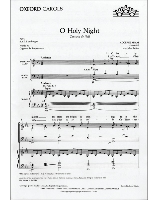 Adolphe Adam O Holy Night (arr. Rutter) Choeur mixte Conducteur chorale