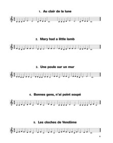 Dès la Leçon 2 du premier volume de la méthode Écouter, lire & jouer, l’élève peut partir la découverte du recueil des Chansons Célèbres contenant des airs traditionnels tels que la claire fontaine, C’est la mère Michel, J’ai du bon tabac, Nous n’irons plus au bois, Une souris verte, Vive le vent et 60 autres airs français et du répertoire traditionnel international dans des arrangements courts et accessibles aux débutants.